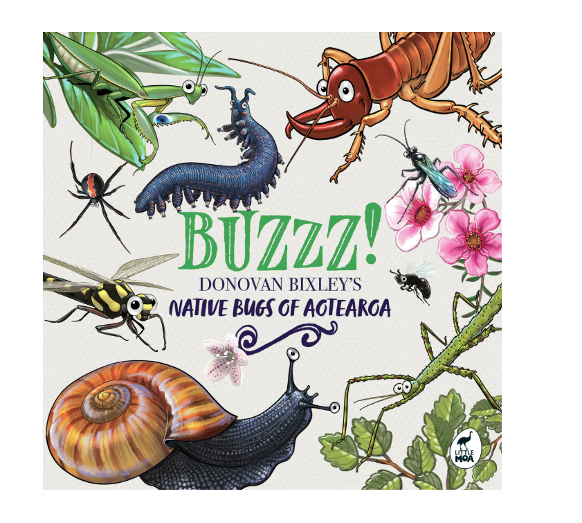 Bestselling author Donovan Bixley expands on his collection about Aotearoa's native flora and fauna with BUZZZ! Native Bugs of Aotearoa.