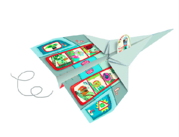 Children fold colourfully illustrated paper with printed instruction to create wonderful flying machines.