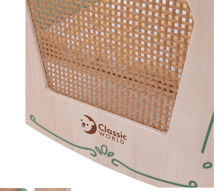 This very cute vintage green cradle combines the vintage design with rattan weaving, resulting in a classic retro style for children to enjoy.