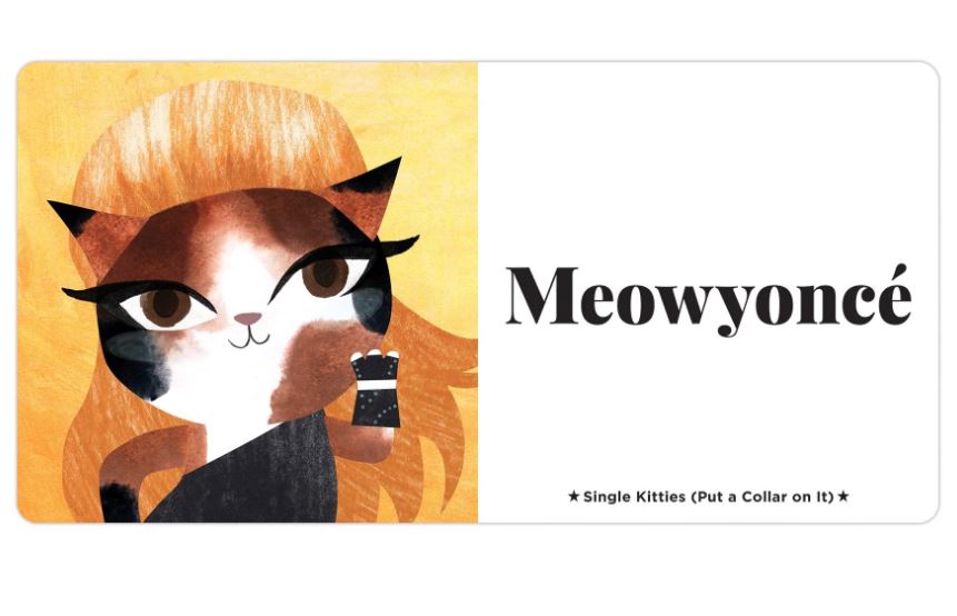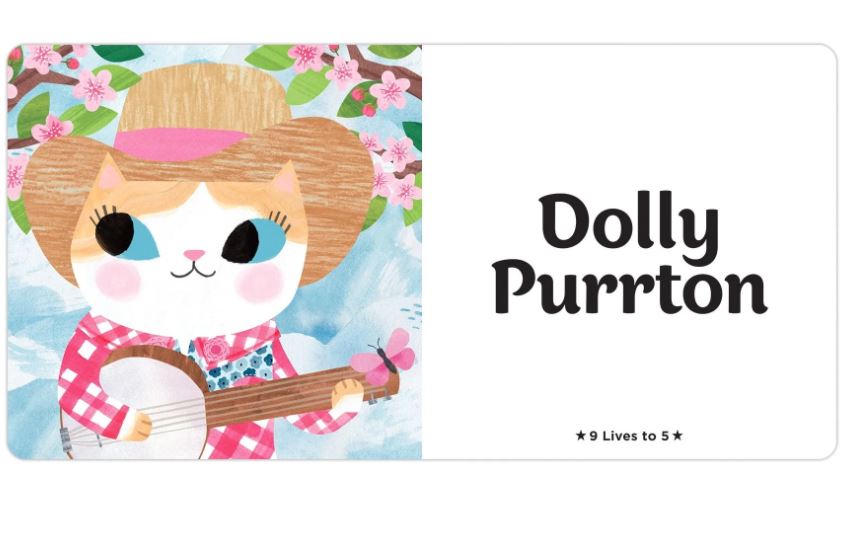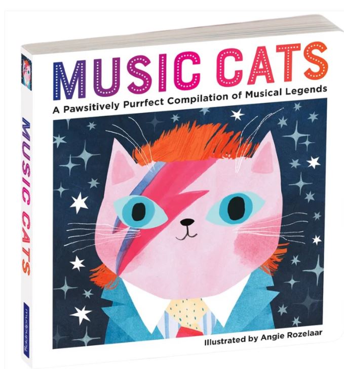 The Music Cats Board Book from Mudpuppy features clever kitty-inspired musician such as Tuna Turner, Dolly Purrton, Bob Meowly, The Notorious C.A.T., Meowyonce and more.