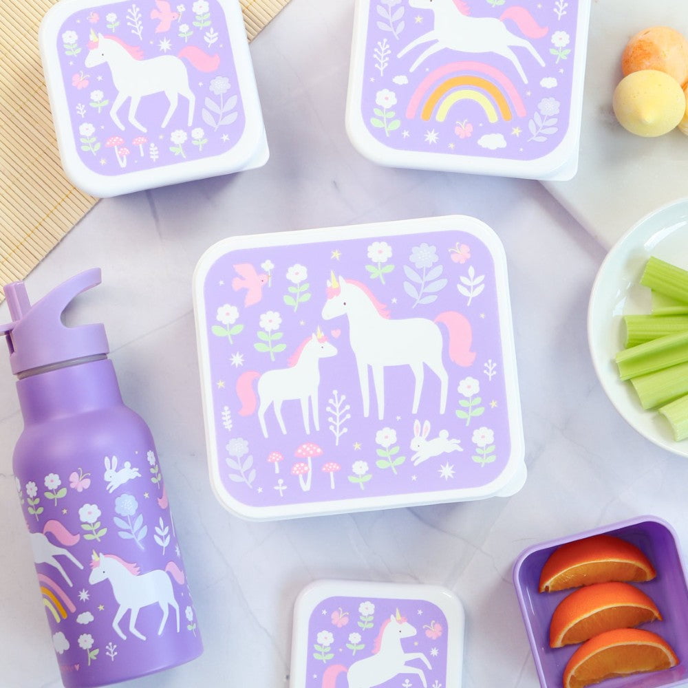 Add a touch of magic to mealtime with this unicorn-themed lunch & snack box set.