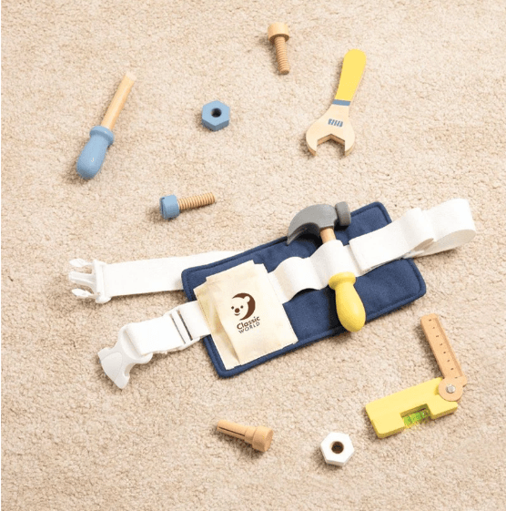Unleash the budding carpenter in your child with the Classic World Tool Belt Set, equipped with essential carpentry tools and accessories, including a foldable level ruler, screwdriver, hammer, wrench, and screws, among others.