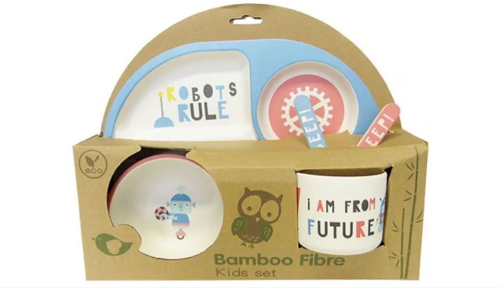 Five piece Robot design, eco-friendly, biodegradable bamboo fibre plate and cup set