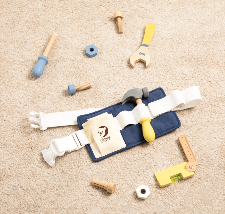 Designed to be worn around the waist, this tool belt ensures that children have their tools at their fingertips, ready for their next construction adventure.