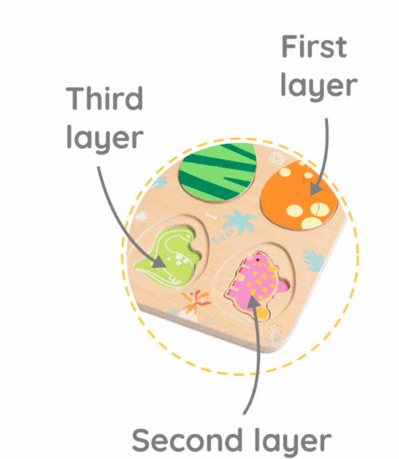 Uncover a world of prehistoric fun with this engaging 3-layer wooden dinosaur puzzle, designed to captivate curious minds and busy hands.