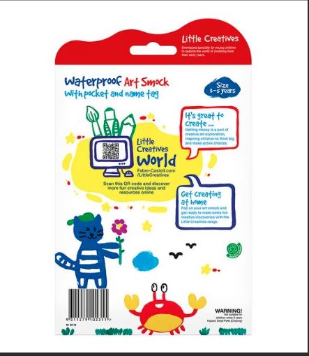 Introducing the Faber Castell Little Creatives Waterproof Art Smock. This must-have accessory helps to encourage your little one's creativity while keeping messes at bay by ensuring your child's clothes stay clean and dry during their artistic adventures.