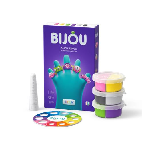 • Contents: 3 cans of clay in a variety of colours, finger-measuring disc, ring-measuring cylinder.