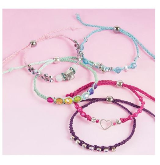 Make 5 dazzling bracelets! Set contains 5 colours of waxed chord,