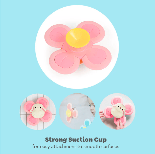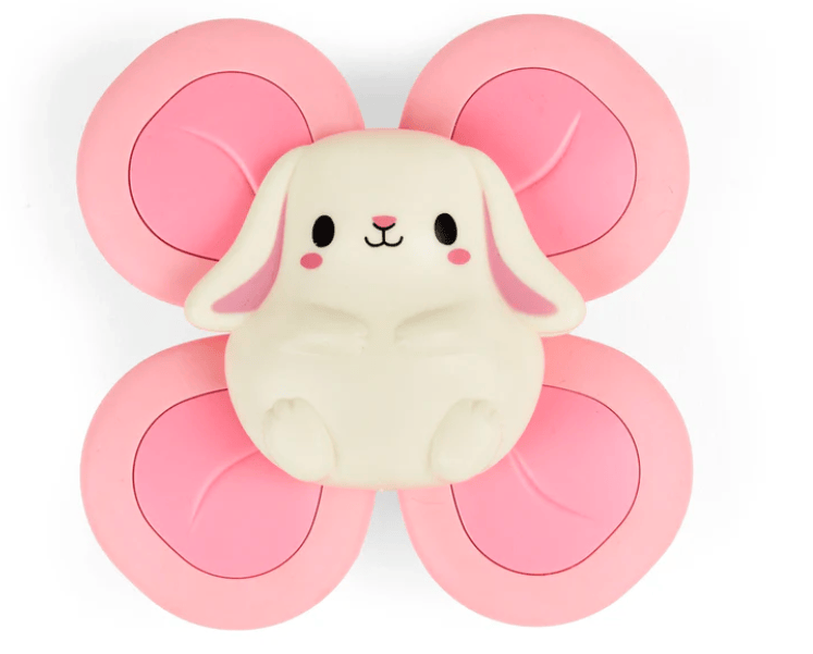 Designed to encourage fine motor skills, sensory play and cause-effect learning, this gorgeous bunny toy features a four paddle spinner element to delight little tiger cubs’ senses. A strong suction cup allows easy attachment to any smooth surface (think bathtubs, tiles, high chairs, mirrors, fridges and car windows).