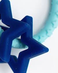 Our Star Teether offers an easy to grasp ring for tiny hands and two bright stars that are soft on gums and ideal for teething babies. Clip the teether onto your nappy bag or stroller so it never gets lost! Made from BPA free, phthalate free, non toxic silicone, this teether is safely chewable for your little one.